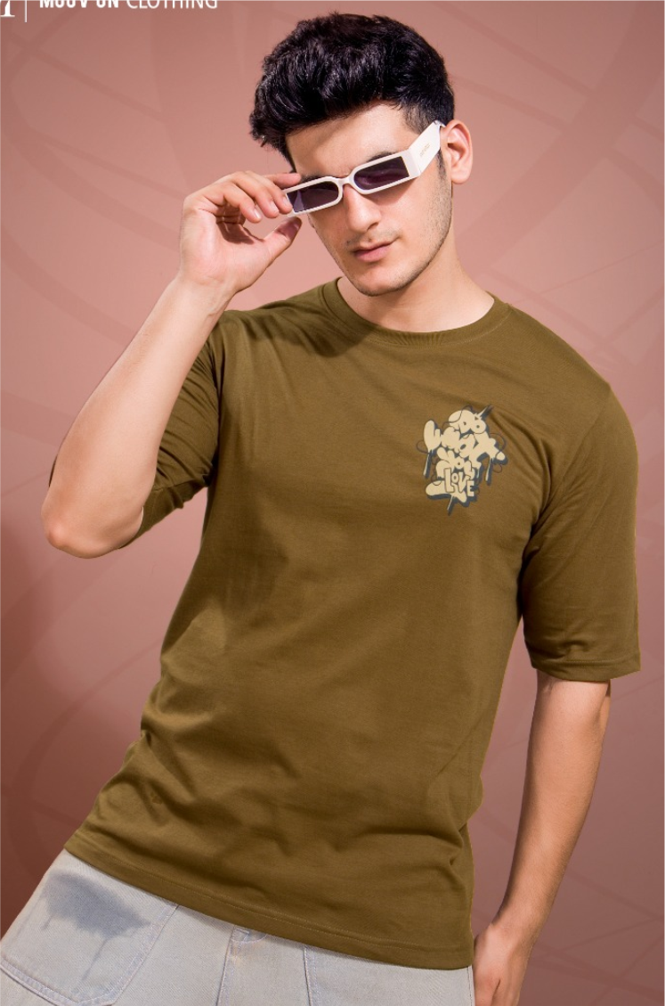 This drop-shoulder silhouette offers a relaxed, oversized fit that sits comfortably on the shoulders while giving you that trendy “street-style” flow. The olive shade gives a rugged yet premium edge, making it ideal for everyday wear, college fashion, or casual outings.